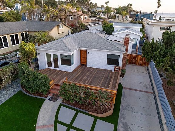 Situated just one house off the bluff, this beautifully updated 3-bedroom, 2-bathroom Craftsman-style home offers panoramic ocean views from most windows. The single-level residence features an open-concept kitchen and family room with a cozy fireplace, perfect for coastal living. Step outside to enjoy the ocean breeze and take advantage of the outdoor shower after a day at the beach. The property also includes a newly added Accessory Dwelling Unit (ADU) with a loft bedroom, ideal for guests or as a private office space.