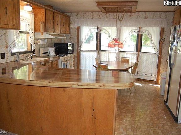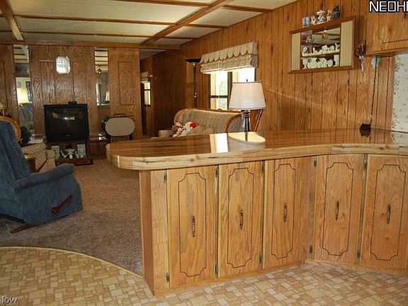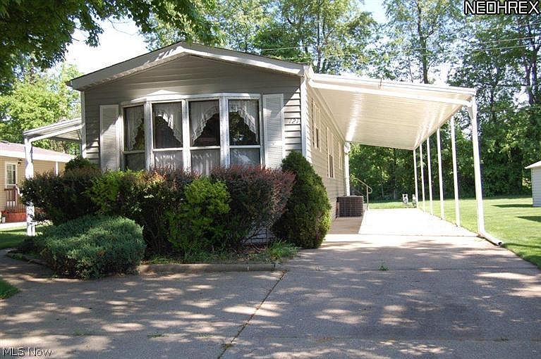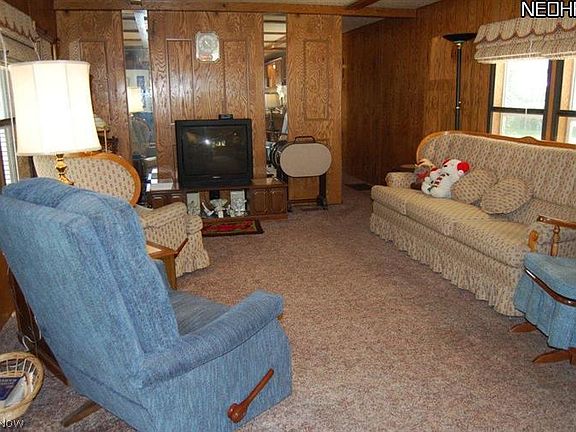 1985 Skyline near end of cul-de-sac in desirable Navarre Village. Wonderful open floor plan with the eat-in kitchen located in the front of the unit. Living area is bright, open and has newer carpet. First floor laundry. Great view from the master bedroom of the wide open country! Storage shed. Carport for at least two cars plus extra parking on extended concrete pad. Very well maintained. Wonderful opportunity to live in Navarre Village, a 55+ age restricted community.