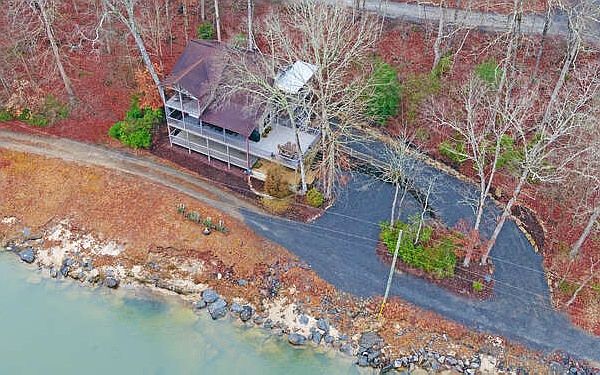 Step in, Step Out Access to the Widest Most Beautiful River Frontage You could hope for! AND Out of the Flood Zone, This Rustic 4 B/R 4.5 Bath Rustic Cabin Boasts Spacious Eat-In Kitchen, Granite, SS Appliances and Double Rock Fireplace also serving the Great Room with Soaring Ceilings, All Wood Interior and Glass Front Views of the River just outside. 4 Large B/R's each with On-Suite Baths with Rock & Glass accents, Custom Vanities. Wrap Around Full Width Porches & Party Deck. Plenty of Parking Space, Hard to find Private Setting on the River! Gated Resort Amenities include 3 Pools (1 Covered/Heated for Yr Round swim) Tennis, Fitness Center, River Parks and all just Minutes to Shopping, Carters Lake, Hiking and Local Wineries. All Furnishings Remain.