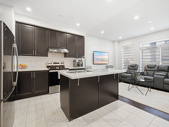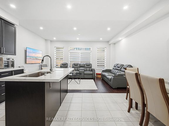 Truly a showstopper! Stunning 3-bedroom, 3-bathroom freehold townhouse located on a quiet street. Built in 2021, featuring no sidewalk and a double-door entry. Enjoy a family-size upgraded kitchen with quartz countertops, stainless steel appliances, and a large breakfast area. Beautifully designed open-concept layout with a spacious great room, high ceilings, and pot lights on the main floor. The primary bedroom offers a private ensuite and walk-in closet. All bedrooms are generously sized. Steps to all amenities and Mt. Pleasant GO Station. Must be seen to be appreciated!
