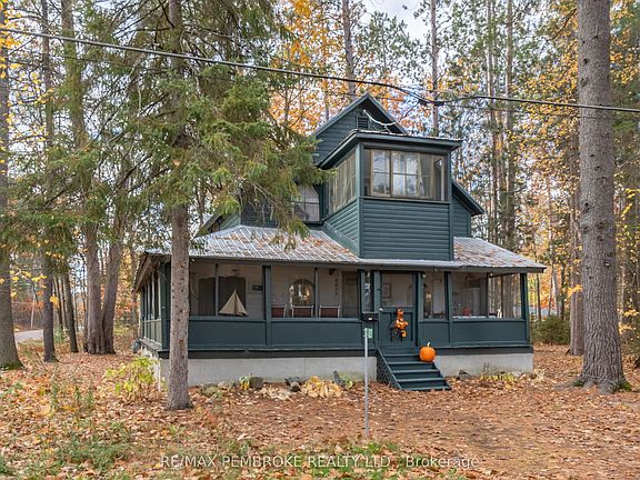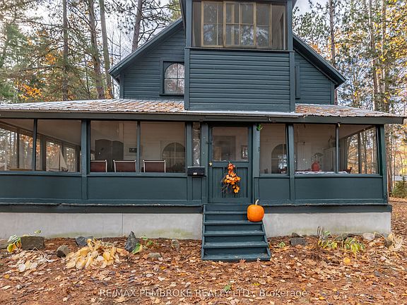 This beautiful 2-storey home is perfectly situated just a 2-minute walk from Point Beach, offering stunning views of the Ottawa River and surrounding trees. The main level features a spacious wrap-around screened-in porch-ideal for relaxing and enjoying the scenery-along with a newer fireplace and a large dining room, perfect for family gatherings. Upstairs, you'll find four comfortable bedrooms and a bright second-storey sunroom that captures the natural light and views. Set on an oversized lot with mature trees, this property provides both privacy and a peaceful setting, while still being just minutes from downtown Petawawa. A rare opportunity to enjoy the beauty of nature and the convenience of town living all in one. 24 hour irrevocable on all offers.