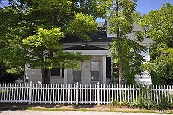 REDUCED!!! Well maintained, sturdy & clean 145 Year old home in the quaint little town of New Melle. Spacious rooms with hardwood floors & special mill work add character & charm to this wonderful nugget of history. Private Master suite & main floor laundry were added several years ago for added space & convenience. Upstairs is serviced by two separate narrow staircases leading to two additional rooms & attic storage area. The mostly fenced beautiful .43 acre lot offers mature trees & a foliage buffer of privacy from surrounding buildings. There is a 50X18 detached outbuilding (which includes a 38X12 lean-to) that can be used for garage, work shop, hobby room, art studio, or just for storage. 10X15 covered deck for back porch sittin'. If you appreciate the old but don't want all of the work of the past you have found it here! The tranquility of the community & the sound of church bells will take the stress from your day & replace it with an appreciation for the simple life.