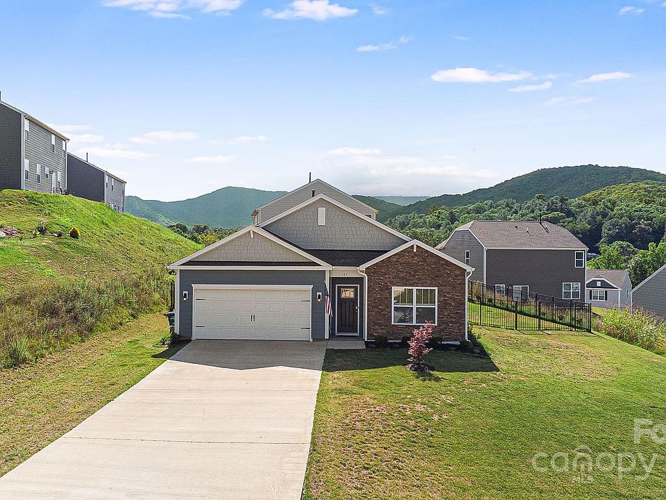 Discover mountain living with the convenience of being close to Weaverville and Asheville. Amblers Chase, a new pocket neighborhood of 19 single-family homes, offers the perfect blend of pastoral beauty and modern homes. This charming 4-bed, 2-bath ranch is just minutes from Main Street and features a contemporary open, split-bedroom floor plan. The gourmet kitchen boasts granite countertops, shaker cabinets, tile backsplash, stainless steel appliances, and an oversized pantry. Modern conveniences include a spacious laundry room, attached 2-car garage, and Mohawk RevWood flooring in the main living areas. Additional features recently added are custom blinds, a fenced-in backyard, and a new washer and dryer. With ample storage in every bedroom, there is plenty of space to keep your belongings organized and out of sight. Enjoy the stunning long-range mountain views that make this neighborhood truly special. This home is designed to meet all your needs and more!