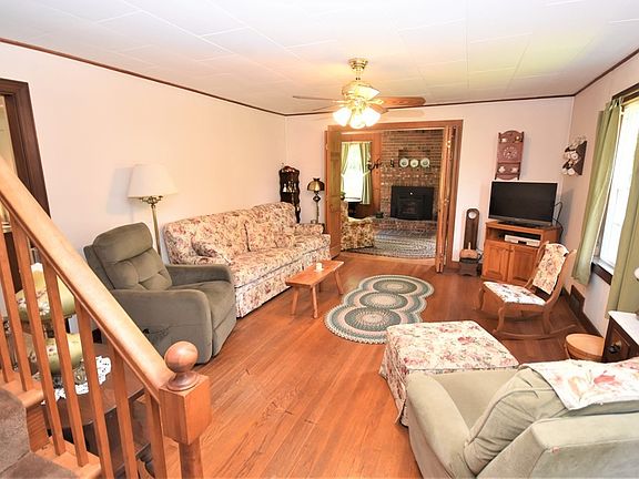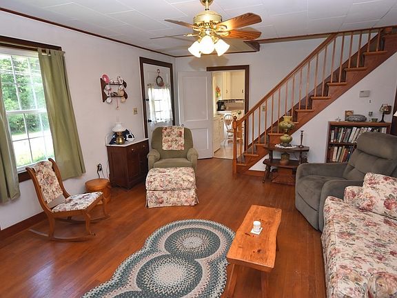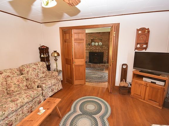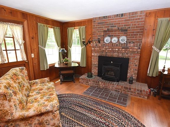 Sweet, well-loved single owner 1946 cape is ready for new people to live in & love. Cozy, bright, eat-in kitchen has laundry connections. The living room has a very attractive extension with a brick fireplace and a pellet stove insert, & access to a small deck; a dining room with a built-in corner cupboard, a bath w a walk-in shower, & a bedroom on the first floor. Upstairs there are 2 spacious bedrooms with built-ins, storage & a half bath. The floors are hardwood & vinyl. The house sits up a gentle slope off the road on a spacious 1.69 Acre lot bounded on the East by a stone wall. There is room for a garden, pets, or play area. There is a 2-car detached garage.