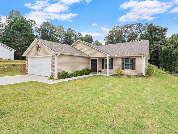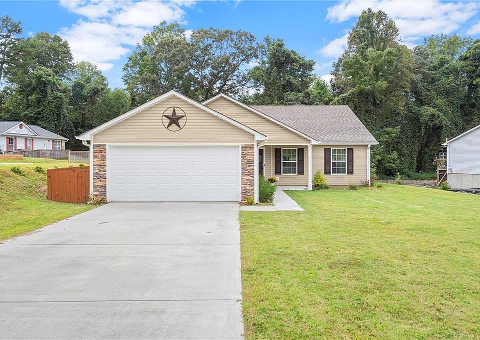 Welcome to 127 Angela Lane, a beautifully maintained single-story ranch home offering easy living, comfort, style, and convenience! Built in 2021, this like-new home features a thoughtfully designed living space. Step inside to find an inviting open-concept floor plan filled with loads of natural light. The spacious living room flows seamlessly into the dining area and kitchen, creating an ideal setup for entertaining or relaxing with family. The kitchen is equipped with stone countertops, modern cabinetry, stainless steel appliances, and a functional layout that makes meal prep a breeze. The private primary suite is tucked away for a quiet retreat and includes its own bathroom with ample storage. Two additional bedrooms and a second full bath provide plenty of flexibility for family, guests, or a home office. Outside, enjoy a fully fenced backyard and side yard, perfect for pets, gatherings, or simply unwinding after a long day. This home offers peace of mind with modern systems and energy-efficient features. Located just minutes from shopping, dining, schools, and the beauty of Lake Lanier, this property combines the charm of small-town living with convenient access to all the amenities you need. Whether you’re a first-time buyer, downsizing, or looking for a turnkey property, this Dawsonville ranch is the perfect place to call home!