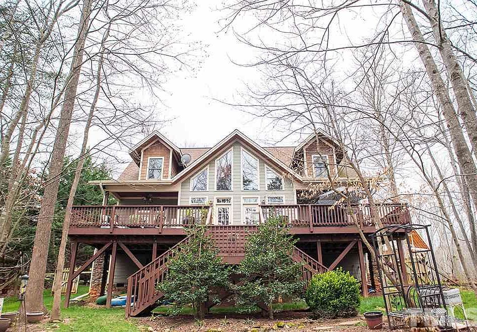 What a gorgeous house at Mayo Lake! Located in the exclusive Water's Edge subdivision.When you ride in, you feel all your stress go away. Soaring gorgeous tongue and groove ceiling, that will just welcome you when you walk in. Main level master bedroom with beautiful master bath, walk in closet, and access to deck from this bedroom. 2 bedrooms upstairs with their own bathrooms....total of 3 bedrooms, 3 1.2 bathrooms. Huge deck that you will love for just soaking it all in.Floating dock. Easy walk to lake