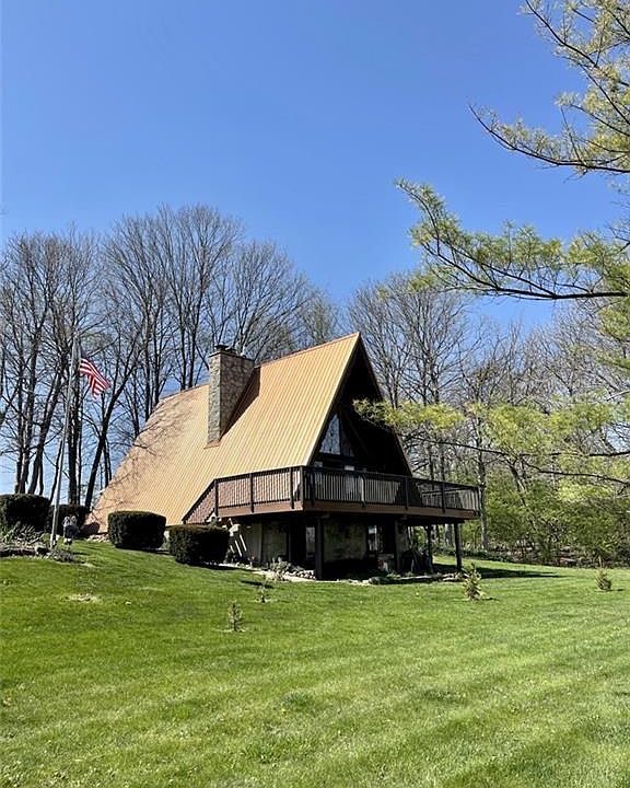 Welcome home, this unique one-of-a-kind large A-frame nestled in a beautiful wood setting. 2 acres, beautiful sunrise and sunsets. Very well-maintained home with walk out Finished basement, loft. Updates , New HVAC system 2021, New Upper deck with Trex flooring 2020, + more. Comes with 40x30 pole barn. This 2520 square foot home has 3 bedrooms, 2 kitchens, 2 full baths with beautiful craftsmanship and well-maintained. Beautiful gardens. Just minutes away from Eaton, Richmond. A must see!