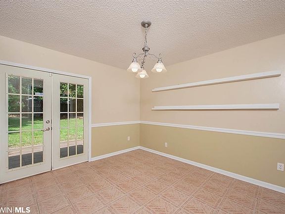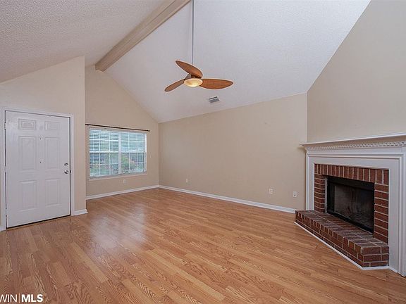 Wonderful brick home in the highly sought after Plantation Hills neighborhood located in Daphne. Home qualifies for a USDA mortgage which provides 100% financing! This three bedroom two bathroom home has been newly painted inside along with freshly painted exterior trim. Living room features laminate wood floors, beautiful vaulted ceiling and a wood burning fireplace. Wonderful eat in kitchen features tile floors, fresh white cabinets and french doors that lead out to the large backyard. In the Master bedroom you will find an attached bathroom with a garden tub, large vanity and walk in closet. New inside and outside A/C unit, ducts and vents.