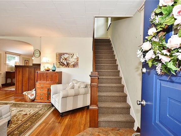 Beautifully maintained 3 bed/1.5 ba home w/ tons of updates w/out compromising the character and original details. Enter into the living room w/ a decorative fireplace framed by original, unpainted built-ins w/ glass front doors that function. The dining room is truly one of a kind w/ a domed ceiling, built ins, updated chandelier & detailed box moldings adding intrigue & dimension. The kitchen is updated w/ white cabinets, quartz counter tops, subway tile backsplash & stainless steel appliances. The kitchen walks out to the patio & a charming backyard w/ mature landscaping & 2 car detached garage w/ level entry. Other updates include a newer roof, updated bath, electrical, newer windows, new Central AC, rebuilt chimney & exposed hardwood floors throughout. The 3rd floor is a great bonus space w/ AC ideal for an office or a playroom. The basement is spacious w/ a half bath. This location is great for those who enjoy walk-ability to school, yoga, & dining. Don't miss this beauty.