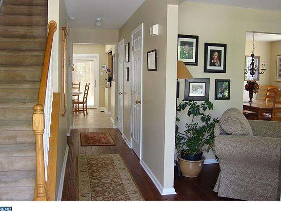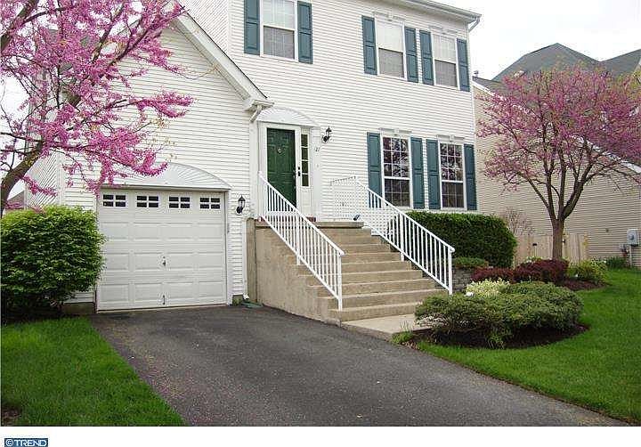 Beautiful colonial-style home in a quiet neighborhood offers ample living space and storage, a park-like fenced backyard, and a master bedroom retreat. Featuring hardwood floors, attractive tile, and granite counters, the open floor-plan combines an eat-in kitchen with a family room including a fireplace. Sliding doors flood the rooms with light and let out onto a deck overlooking the backyard. A traditional dining room opens onto the formal living room, adding extra living and entertaining space. A large laundry room and convenient half bathroom round out the main level. The three bedrooms and two full baths make up the upper level and include the spacious master suite. With its cathedral ceilings, walk-in closet, and large, light-filled en suite bathroom, the master is truly a retreat. The master bath features a dual vanity, standing shower, and luxurious soaker tub. The basement is made up of a large storage space and a finished bonus room. Featuring a gas stove, the large bonus room is waiting to be turned into another family room, a game room, a play room, an exercise center--or anything else you can think of. South-facing sliding doors fill the basement with light and let out into the backyard. Surrounded by mature trees and shrubs, the fully-fenced backyard is a quiet, private space perfect for playing, relaxing, and entertaining. Enjoy the attractive landscaping year round. Fire up the grill on the flagstone patio. A small open field across the street expands your outdoor space. And with no houses directly across the street, there's never a problem with parking. Families will enjoy walking to two playgrounds and everyone will love the large ball field, tennis court, and basketball court--all located within the neighborhood. This lovely house combines colonial style with modern conveniences like an attached garage, storage shed, and plentiful storage and closet space to make a home that is easy to live in--and easy to call home! Long term lease considered. 20 Mins to JBMDL, close to Turnpike and 295, easy commute to NY & PA. Full credit report, 2 most recent pay stubs, military orders for service members or job letter are required with lease application.
