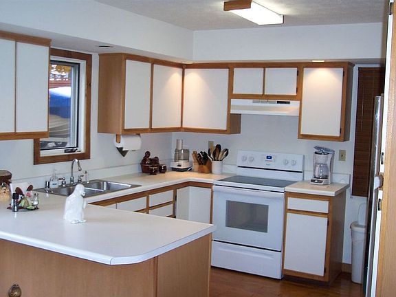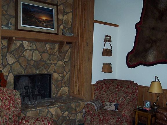 Main level master, 2 stone wood burning fireplaces, with a main lake view from most of the house. 2 level treated decks, family room and game room with basement and wet bar. Poured concrete basement. Paved walkway to dock from lower deck. 2 story boat dock with deck on top, right side goes with sale. 24X30 detached garage.