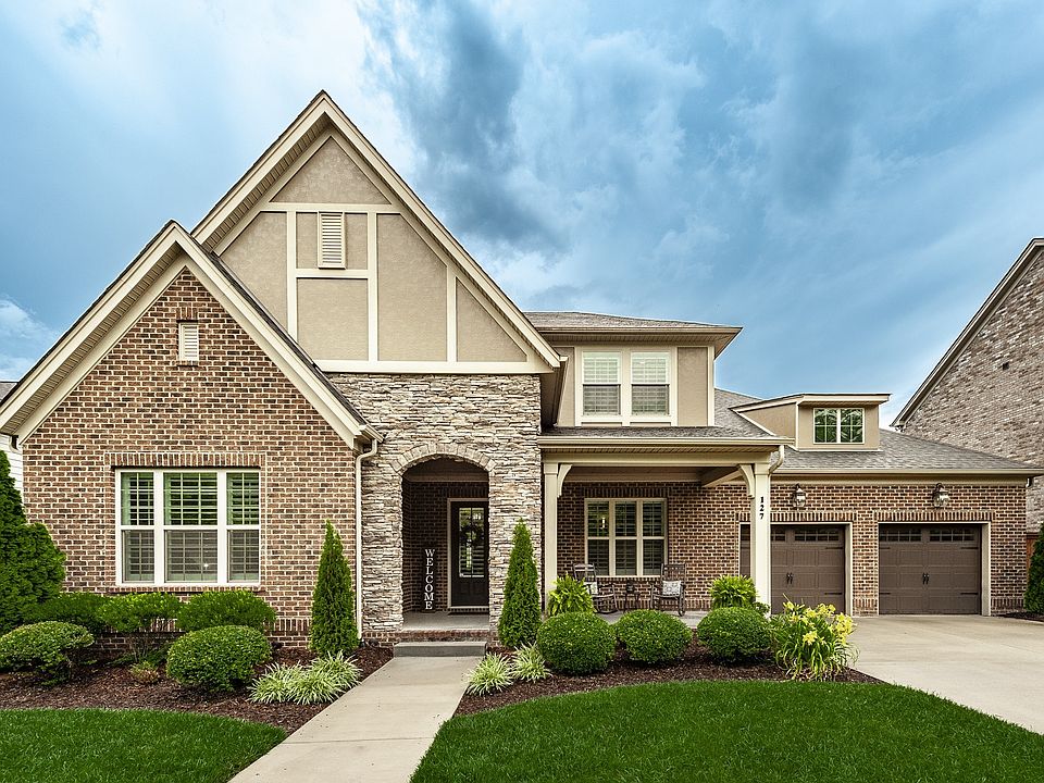 This beautiful Drees home in Durham Farms is a must-see. It's an all brick home on a 75ft wide lot, facing a greenspace. The living space is on one level, with a bonus/rec room with half bath upstairs for entertaining guests. Features include a French door office with storage, 12 ft ceilings in the family room with a gas fireplace, and a luxurious owner's bedroom with a spacious bath and huge custom walk-in closet. Upgrades include shutters, built-ins, fans, custom shelving, quartz counters, epoxy flooring, a screened porch, hot tub and landscape lighting. Durham Farms offers amenities and is close to shopping and restaurants. See media for way more upgrades!