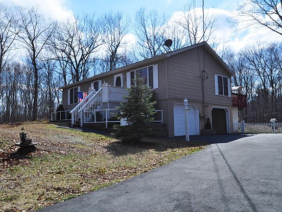 Lovely 3 bedroom 2 bath home located in the community of Pocono Mountain Woodland Lakes. Walking into this house you will notice the beautiful hardwood floors throughout with the spacious open floor plan of the kitchen, dining area and living room. Sliding glass doors lead you to the open deck, perfect for entertaining. The lower level of this house is a vast finished basement perfect for a fun family room with laundry hook up and a door that brings you to a 2 car garage. Don't let this house slip away, call for a showing today!