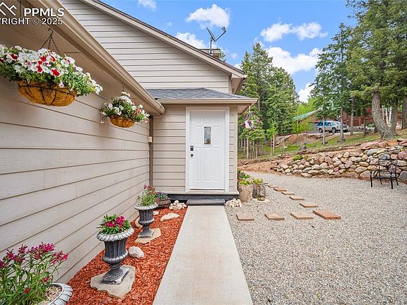 Charming Mountain Retreat on 1.7 Acres | Zoned for 1 Horse | Move-In Ready| Welcome to your perfect Colorado mountain home—nestled on a spacious corner lot in a private cul-de-sac, just minutes from private lakes, scenic hiking trails, and sweeping views of Pikes Peak. Located in the desirable Highland Lakes community, this home offers exclusive access to nine hidden lakes, including nearby Elk Lake, perfect for fishing, paddleboarding, and peaceful nature walks. When you live here, the lakes—and the lifestyle—are yours to enjoy year-round. This move-in ready retreat sits on 1.7 usable, fully fenced acres with the rare bonus of horse zoning and high-speed internet—ideal for work-from-home living or weekend escapes. Inside, enjoy fresh paint, newer carpet, and updated granite countertops that give the home a clean, modern feel. The flexible layout features a spacious lower-level suite with a stone wood-burning fireplace, full bath with double vanity, and walkout access—perfect as a master retreat, family room, or game room. Upstairs, a light-filled loft offers space for a home office, media room, or second living area. Additional highlights include a greenhouse, hot tub with pergola, new storage shed, and an optional asphalt driveway upgrade with a strong offer. Both bathrooms feature updated tile, counters, and sinks. Whether you’re looking for a full-time residence or a peaceful getaway, this property delivers space, comfort, and functionality—all priced to move in today’s market. Don’t miss it—schedule your showing today!