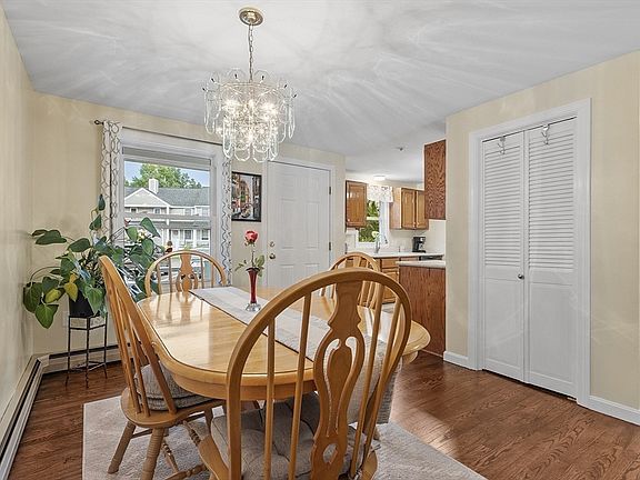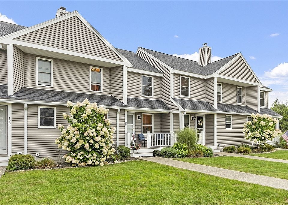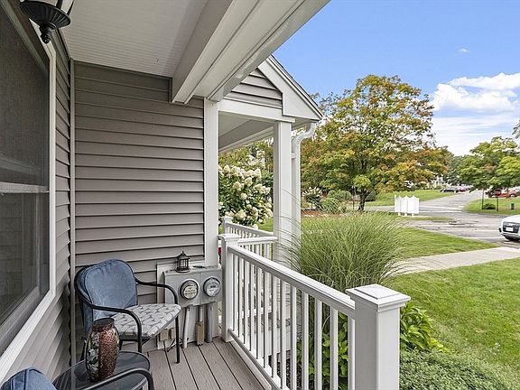 BUYER'S REMORSE - Welcome to your new condo! Step into this well-maintained, bright, and spacious unit, featuring stunning hardwood floors in the dining and living areas as well as on both staircases. The kitchen is a chef’s delight, with upgraded Corian countertops and stainless steel appliances, seamlessly flowing into the dining room. Enjoy your mornings on the charming front porch or unwind on the balcony overlooking the beautifully landscaped lawn and perennial gardens. Upstairs, you’ll find two generously sized bedrooms with newer carpeting and a full bath. The partially finished walk-out basement offers a versatile space for family gatherings or entertaining at the bar with a sink, leading to the patio. Additional highlights include updated plumbing, new interior doors, a 2014 boiler, and a brand new oil tank installed in 2024. Ideally located for commuters, with quick access to I-190, Route 117, and Route 2, plus shopping, dining, and local amenities just minutes away.