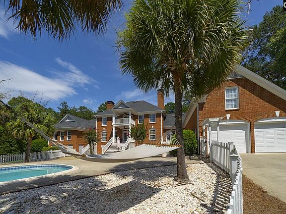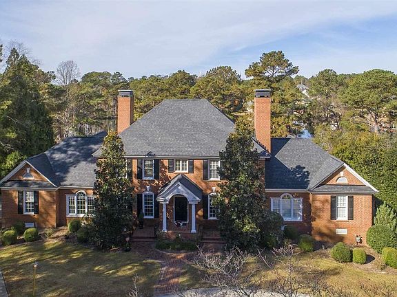 All brick executive home sitting on 2.2 acre lot in Wildewood with 219 ft of waterfront. Built for multi-generational living, this home has 5 bedrooms, 5 full baths with dual masters, one up and one down. Gorgeous hardwoods throughout the entertaining areas downstairs. Full library with built in bookcases, in-law suite with full, private bath with walk in shower, wet bar with built-ins, and office in addition to the formal living room, dining room, great room, kitchen, and craft room on first floor. Fireplaces in both formal living room and great room. Chef's kitchen withstainless steel appliances. Double ovens, microwave, gourmet hood, and gas cooktop. Master suite upstairs has private bath and sitting area, two more bedrooms up with full bath. In the FROG, there is a bedroom suite with full bath and mini kitchen with stove. Step into your backyard oasis with a gunite pool with heater, large backyard with playset all overlooking the waterfront in this very private lot. Circular drive, architectural roof, landscape lighting, 3 car side entry garage, fountain, 2 levels of porches overlooking your backyard.