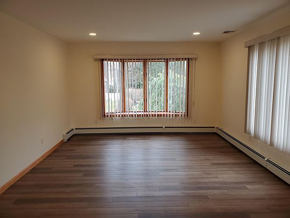 This recently renovated stone and stucco raised ranch offers 4 bedrooms and 3 full baths, thoughtfully updated for its next occupant. Updates completed in 2023 include a full interior repaint, new lighting fixtures, a newly installed entryway banister, refinished hardwood floors, baseboard radiators, and modernized bathrooms. The brand-new kitchen features an oversized center island, white shaker-style cabinetry, quartz countertops, subway tile backsplash, and stainless steel appliances including refrigerator, stove, microwave, and dishwasher.