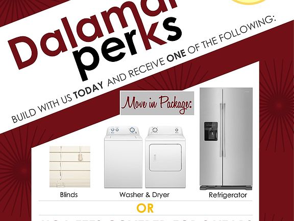Affordable Custom Homes! Quick Close-The Galveston by Dalamar Homes, Builder is offering Refrigerator, Washer & Dryer and Blinds throughout for a limited time. Master Bedroom on first floor With Trey Ceiling/Walk-in Closets/Gourmet kitchen/Pantry/Granite Countertops/Built-in Stainless Appliance Pkg Including Gas Cooktop/White Cabinets/Granite Counter Tops In All Bathrooms/ Covered Back Porch/Utility room/ 10' Ceiling on First Floor/Radius Corners Throughout.