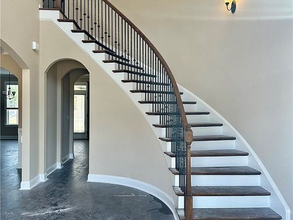 Discover the allure of Faircloth Homes 3597 plan, a 5 bedroom, 3 bathroom masterpiece that blends sophistication & comfort located on a LARGE CORNER lot! As you enter, be prepared to fall in love w/ the GRAND curved staircase highlighting the 2-story foyer. The stunning dining room w/ coffered ceilings to the right & to the left a living room/study. All leading into the large great room, appointed w/an electric fireplace, gorgeous large gourmet kitchen featuring an oversized granite island, granite countertops, double ovens, tile backsplash, & cooktop in the kitchen. Includes a first floor bedroom w/an adjacent full bath. On the second floor, you will love the HUGE Primary Bedroom w/a sitting area and an electric fireplace! The primary bathroom has a garden tub & separate shower w/ dual vanities, & a large walk-in closet. Upstairs there are 3 additional bedrooms, & a laundry room. This home comes w/ 2-in faux wood blinds, gutters, irrigation, & rear concrete patio cover w/ceiling fan!