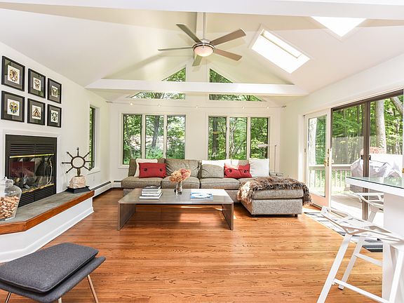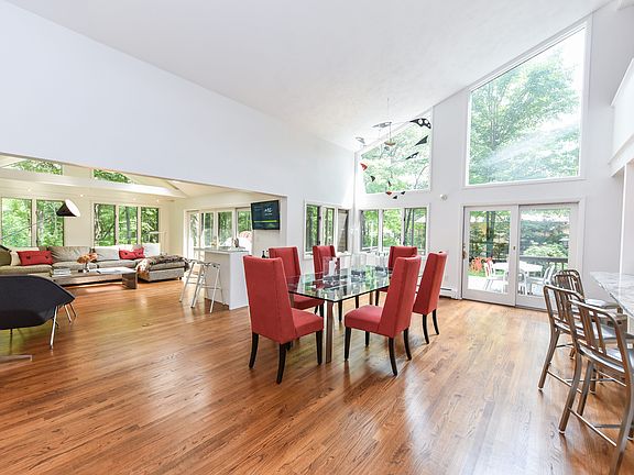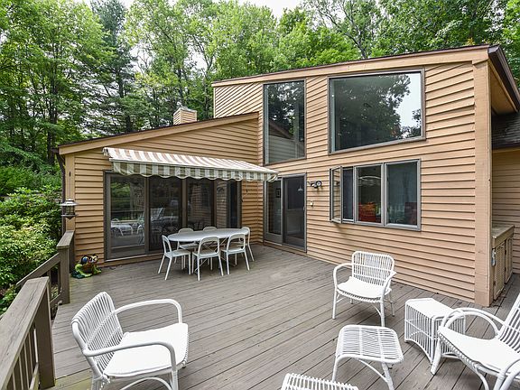 SELLER MOTIVATED FOR PROMPT SALE!! Move in RIGHT AWAY and still enjoy summer lake activities. Wonderful SINGLE level, bright, open floor plan Contemporary with recently renovated and enlarged Chef's kitchen with all amenities incl.dbl.ovens, granite counters and expansive breakfast bar. Fabulous soaring ceilings, tile and REAL hardwood floors flow throughout. Living room with skylights, gas fireplace and sliders lead out to wrapped deck. Main level also offers all bedrooms, including Master Ensuite, dining room, den with sliders and laundry room. The large wrapped deck is great for entertaining and provides an awning for shading. Expansion possibilities for added garage bay and a second master suite. The large loft area offers great office space or family room as well as access to walk in Attic which could accommodate space for add'l bath. Level grounds w/mature plantings surround this home. Central air and a multi-zoned hot water heat system serve this lovingly maintained home and provides you with controlled comfort year round. Come enjoy lake living with the clubhouse, gym, tennis courts, pool and lake swimming, 4 beaches, basketball court, boating and fishing. All this plus only minutes to skiing, hiking, golfing, CT Wine trail, music and theater events and so many more area venues for entertainment, shopping and award winning eateries. THE ULIMATE WEEKEND GETAWAY or year round home for anyone looking for Lake Living..And LOW TAXES!!!!! You can't beat it.