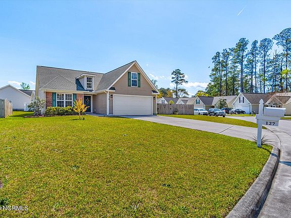 Your move-in ready oasis awaits! Ample storage and welcoming open floor plan on a generous corner lot! Enjoy a relaxing escape in the back yard with a beautiful patio pergola. This home is well maintained and has a new heat pump. Conveniently located to with close proximity to MCAS Cherry Point, downtown and beaches. You will Surely not want to miss this one! FROG or bonus room, could double as 4th bedroom. New HVAC recently put in.