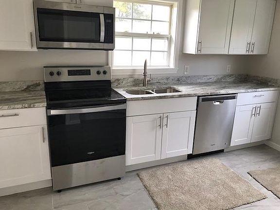 Total renovation includes new: granite countertops, LVT floors in living room, tile in kitchen and baths, carpet in all bedrooms and ceiling fans throughout. New stainless steel appliances.