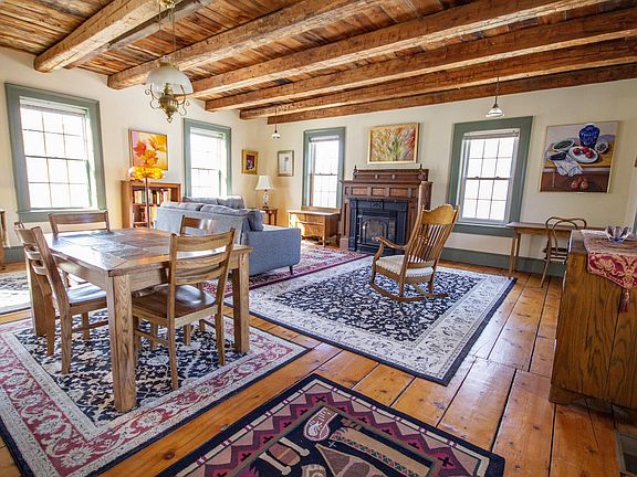 On Feb 14th, 1827 Leonard Taylor secured the contract to build a two story brick schoolhouse and other outbuildings. The cost of the building was $735.74 and to pay this amount the town tax was raised by "21 cents on the dollar of the grand list, one third to be paid in cash and two-thirds in cattle and grain". Unfortunately, the cupola is gone, but much of the original charm and character remain. Each room has hand hewn beams and there are broad plank floors. Over the years many improvement and renovations have been made. Beautiful millwork, Anderson windows, a new roof, insulation work and bathroom renovations just to name a few. The schoolhouse is located just northeast of Rochester Common, walking distance to restaurants, groceries, library, post office, hardware, etc. Tucked away between the schoolhouse and perched high above the bank of a brook is a bonus 2BD/2BTH cottage! This is an extraordinary property and not to be missed.