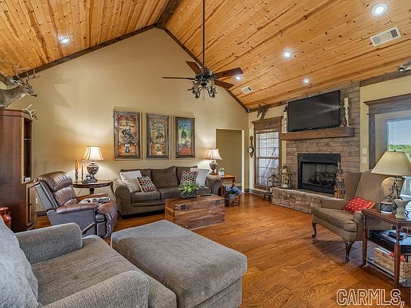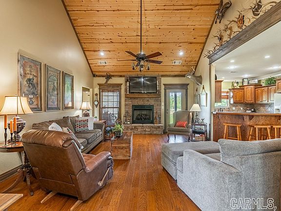 Escape to your own private paradise with this stunning custom-built home on 10 beautiful acres. Boasting 3 spacious bedrooms and 2.5 baths, this split floor plan home is the perfect retreat for anyone seeking peace, privacy, and luxury. Relax in front of the gas-burning fireplace in the spacious living room, or head to the huge bonus room to enjoy a game or movie night with friends and family. And with a safe room on the property, you'll always feel secure and protected. Step outside to enjoy the beautiful views from the covered front and back porches, perfect for morning coffee or evening cocktails. And with a 6-stall horse barn complete with tack and feed room, as well as a lean-to, this property is perfect for horse enthusiasts. Nine acres of lush pasture provide plenty of space for your horses to roam and graze, creating the ultimate equine haven. Don't miss this once-in-a-lifetime opportunity to own your own piece of paradise. Call today to schedule your private showing and start living the dream!