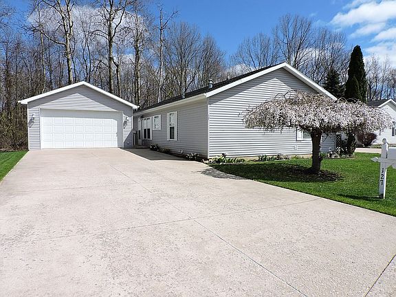 Welcome home to 127 Block Street in the beautiful Williamston Lakes Community! Within this 3- bedroom, 2 full bath manufactured home, you will find an open floor plan of the kitchen, dining, and family room with French doors leading to a private spacious deck overlooking the woods. Off the family room is a full bath with 2 adjacent bedrooms. Living room and Master suite are on the opposite side of the home, providing ample space for both large family gatherings and smaller settings for privacy. Master suite offers a walk-in closet with shelving units and a handicapped accessible bathroom with an oversized tiled shower and plenty of storage. Laundry/utility room (with washer, dryer, furnace and water softener) is found just off the kitchen to provide easy use and maintenance. You will also have a spacious 2-car detached garage with heated floors (heated flooring system needs installation completed before turning on) as well as a lawn irrigation system and central air. All appliances in the home are included: gas range with a double oven, above stove microwave, dishwasher, refrigerator, water heater, water softener, kitchen sink filtration system, and washer and dryer. Whole home natural gas powered generator. Plenty of large windows offer abundant light in this lovely, family-friendly home ready for immediate occupancy.