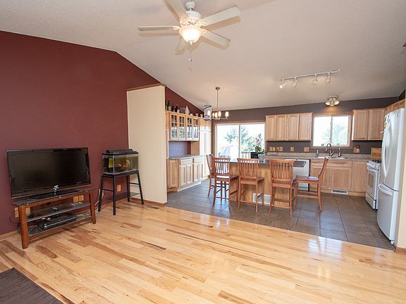 Updated kitchen with hickory cabinets, porcelian flooring, and quartz center island. Updated living room with hardwood hickory flooring. Sliding glass door to 16x10 deck. Vaulted ceilings! Main level has walk thru bath off master bedroom and 2nd bedroom up. Lower level has 2 more bedrooms and 2nd full bath with jetted tub. Chain link fenced yard and 17x10 patio. Home has radon mitigation system, new gas furnace and central air.