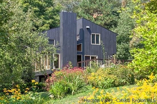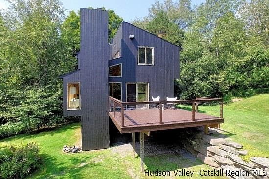 MODERN . . . light-filled . . . timeless-designed CONTEMPORARY in the much sought-after TUNIS LAKE COMMUNITY! This perfect country get-a-way . . . 3 bedroom -- 2 bath house . . . features a much desired OPEN FLOOR PLAN with: spacious VAULTED-CEILING GREAT ROOM, dramatic FIELDSTONE FIREPLACE, spectacular floor-to-ceiling SHOWCASE WINDOWS, attached 18' x 18' NEW ENTERTAINING SUNDECK and OPEN EURO KITCHEN with sit-down BREAKFAST BAR. Other highlights include: two 'DWELL-WORTHY' newly renovated TILED BATHS (one with a dramatic glass enclosed shower . . . the other with deep SOAKING TUB), random-width HARDWOOD WOOD FLOORS thru-out, attached 1+++ car GARAGE, new GENERATOR and . . . finished WALK-OUT PLAY-ROOM with flagstone floor. PRIVATELY SET ON 5+ ACRES . . . at the end of a town maintained road . . . this home has a striking NEW outdoor-dining STONE PATIO, stone FIRE-PIT gathering area, beautiful age-old STONE WALLS, southern exposure and Catskill Mountain VIEWS from nearly every room. Come visit soon to view this must-see house and explore the beauty and recreational amenities of Tunis Lake . . . Swimming, Boating, Tennis, Hiking and Skiing at BELLEAYRE and PLATTEKILL nearby. All this . . . plus, the perfect location to the destination towns of ANDES and BOVINA!