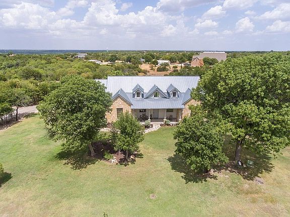 Enjoy beautiful country living just a short 25 minute drive from downtown Fort Worth! Stunning 4 BR-3BA home nestled on over 2.5 acres of lush landscape and mature trees. This beautiful home offers an open floorplan with soaring beamed ceilings and large windows provide for beautiful views of the property. Light and bright, recently painted and new carpet! Front and back porches will provide for endless sunrise and sunset views. This small gated community offers both the enjoyment of country life with the proximity to the city.