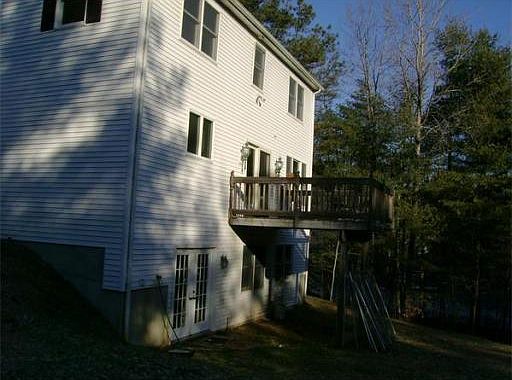 Contemporary cape situated on over 2 acres. First floor has open floor plan and maple floors. Kitchen with center island. Fireplace in living room. Dual banister stairway leads to second floor. Master bedroom with walk in closet. Deck off dining area overlooking peaceful backyard. Finished basement with family room and third bedroom and walk out double doors. This is not a typical cape, very unique with its contemporary flair!