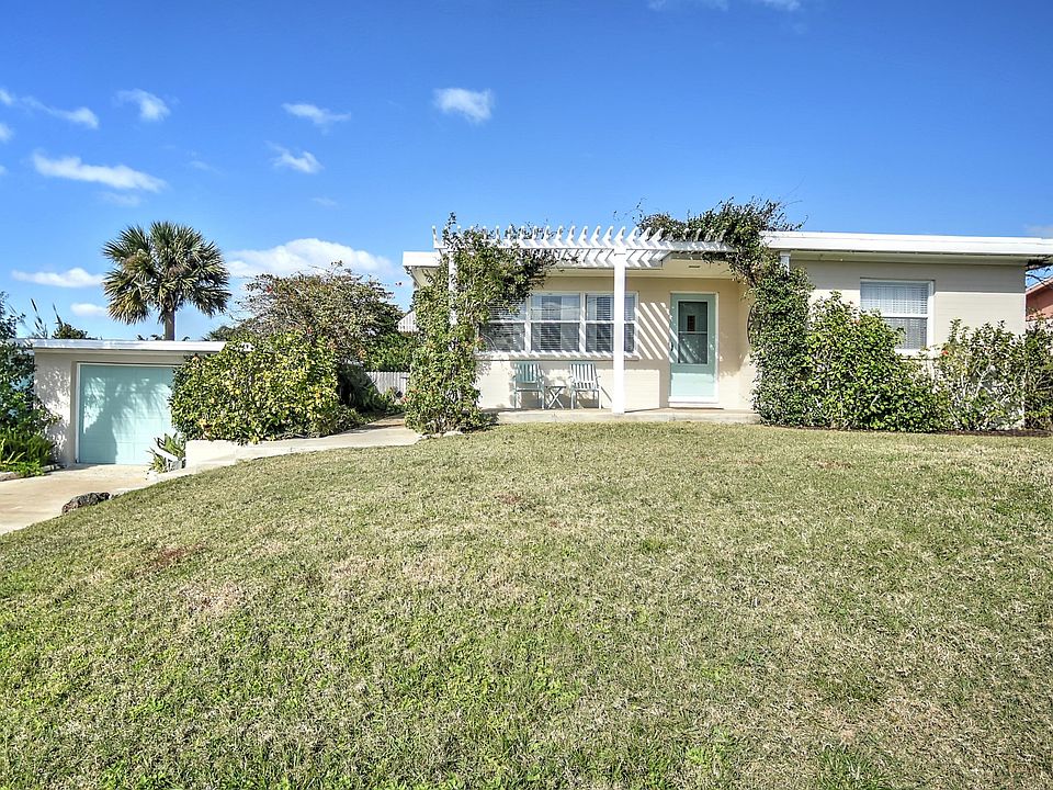 OPEN HOUSE 3/23 2-4 3/24 12-2This BEACHSIDE home has so much character, No cookie cutter upgrading done here. This home is very close to the beach in a wonderful neighborhood with some nostalgic beach bungalows. Just 4 houses from A1A. NO HOA. The Beautiful foliage and pergola garden areas greet you from the garage & driveway. This concrete block home offers 2 bright large bedrooms, an updated full bath, a living room with original hardwood flooring from 1950, fireplace and a beautiful kitchen with breakfast area. Living room ceiling has contrast inward trim. A bonus room includes inside laundry, a half bath and room for a guest bedroom, office or family room. Steps lead outside to a great entertaining area with a large private backyard. Plenty of room for pool, gazebo or your beach t