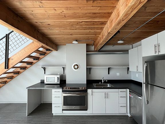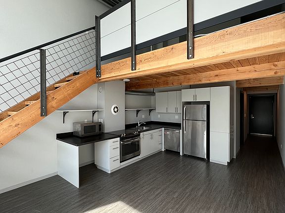 Unit 305 is a large 890 SF, 1 bedroom, 2 full bath unit, located on the top-floor with east-facing windows for morning sunlight. Your stacked washer and drier is in unit for convenience, there is storage, and your loft is equipped with a walk-in closet. A rooftop terrace is accessible to all residents at their leisure with barbecues, lounge chairs and 365-degree views of downtown Seattle, Mount Rainer and the Space Needle.