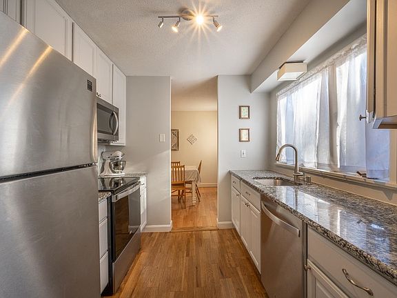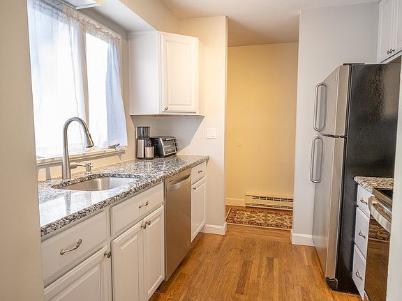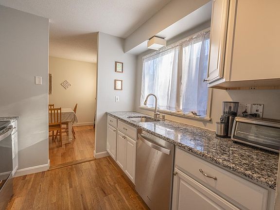 If you are looking for an in-town Hanover home that is move in ready, this fantastic three bedroom two full bath condo is ready for you. The kitchen features classic white cabinets and granite countertops and new appliances. The living/dining room has wood floors and access to a private balcony overlooking Girl Brook. This main floor is completed by an entry area with ample closet space as well as a bedroom and full bath. The lower level offers a very spacious primary bedroom, second bedroom, full bath, and very useful storage and laundry space. Additionally, this home offers alternative heating and cooling options with both mini splits and a pellet stove. Outside you'll find well landscaped grounds, a clubhouse, pool, and direct access to a network of hiking/x-country trails leading to town and campus