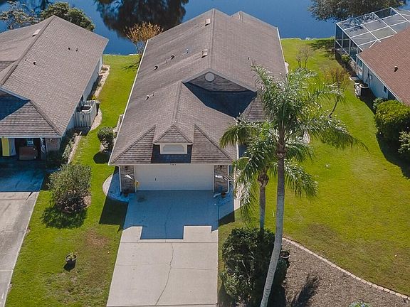 This property is situated within the secure confines of the Pelican Bay Golf Community. It offers convenient access to both the beach and Orlando. The house features 2 bedrooms and 2 bathrooms, with a 2-car garage and canal front view. The open floor plan separates the living area from the kitchen, which has a breakfast nook that faces the front of the property. The living room has high ceilings and plant ledges, with a triple glass sliding door leading to the screened lanai and providing a picturesque view of the canal. The master bedroom has a spacious updated bathroom with granite countertops, a new double vanity, and shower.
