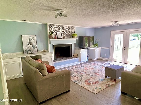 Pretty & Practical! 3 Bedroom 1.5 Bath home in the heart of Havelock. Living room is large, bright & airy with new laminate flooring, a wood burning fireplace recently updated with designer tiles. The living area has built-in areas for storage and a work space. A new exterior door leading to the rear of the property takes you to the yard which is totally fenced in for the safety of the kiddos or pets. The kitchen are has updated shiplap - back splash, a new dishwasher and large pantry for those extra kitchen tools. There is plenty of counter space to prepare your family meals.. Just down the hall are three bedrooms, a full bath and formal dining area all with original hardwood flooring.Just minutes to Cherry Point, shopping, schools, and restaurants.Outside shed has no value, appliances are as is.Call Now or you will be to late!