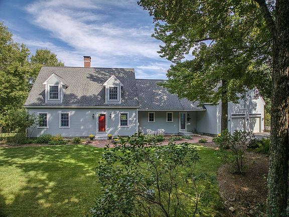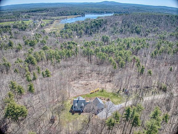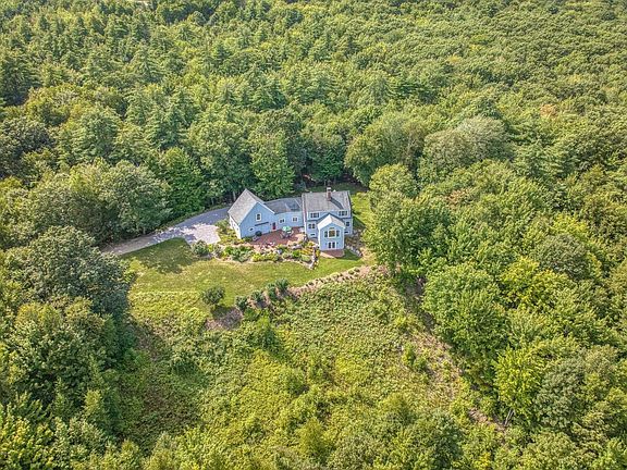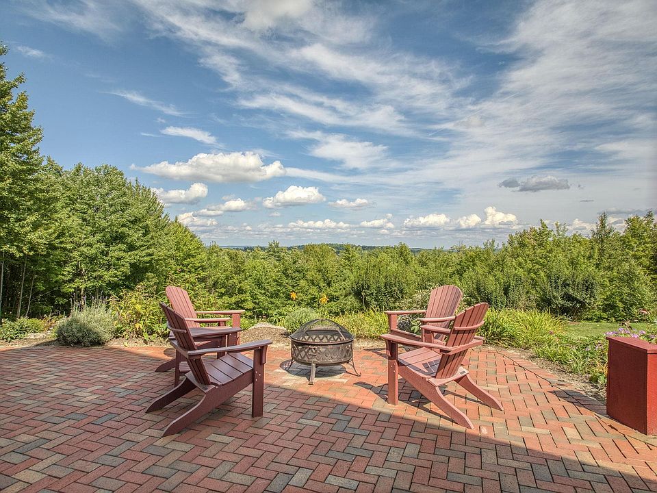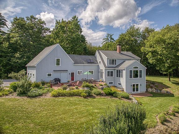 VIEW-TASTIC! Hike the trails for hours, and enjoy easterly views over the Great Meadow to the Uncanoonuc Mountains, visible from all windows in this stunning open-concept contemporary Cape. Private & serenely located on19 acres, with stone walls, brick patios & perennial gardens. As you step through the inviting entry, you are drawn to the sun-filled vaulted-ceiling living room with windows on three sides framing the expansive views. The open plan transitions dining room, where French doors beckon you to the brick patio/firepit. The chef's kitchen has warm cherry Crownpoint cabinetry, granite surfaces and top-end stainless appliances. The nearby woodstove warms the wintry gatherings. A painted cabinetry pantry wall leads to the mud room, the laundry room, powder room and outdoors to the front porch and paver patio. A fabulous FIRST FLOOR Primary BEDROOM provides easy living, has a walk-in closet, an updated marble surface vanity, and a custom marble tile and glass-door shower. On the second level three bedrooms share a full bath with a glass-door shower featuring whimsical glow-in-the-dark grout. A bonus room provides access to the attic over the garage offering EXPANSION possibilities (GOLF SIMULATOR?); a staircase leads to a door in the garage below. The walk-out lower level offers more space to customize to suit your lifestyle needs...a gym or home office. Experience the epitome of New Hampshire living in a wonderful QUALITY-OF-LIFE town with TOP schools. VISit Today!