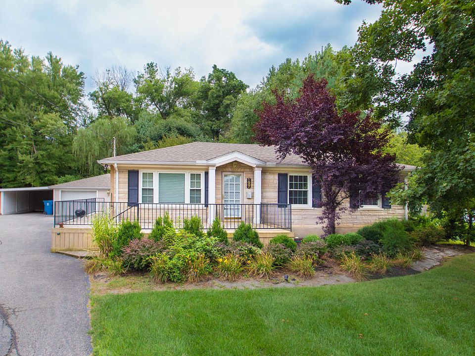 Welcome home to this cozy 2 bedroom, 2 bath ranch. Beautiful curb appeal with lush landscaping and a large front deck that wraps around to the driveway. The living room is large and is filled with natural light. Hardwood floor underneath the carpet throughout. The galley style kitchen maximizes the space with great cabinet storage and long counter tops. Adjacent to the kitchen is the spacious dining area that fits a dining table for 6. The master bedroom is huge and has great closet space. Another bedroom and full bath complete the main level. The basement has a finished area that is perfect for a family room, features a kitchenette and there is also a finished full bathroom and bedroom. The unfinished part of the basement is where the laundry is as well as a workshop and tons of storage space. Out back is another large deck overlooking the green, fenced in backyard featuring mature trees and a coy pond. The detached garage has 2 attached workshops and 2 storage areas with double door access to backyard for a total of 4 additional storage rooms! Call to schedule your showing today!