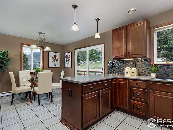 Wonderful, spacious home with lots of flexible interior living space and inviting exterior patios and decks with panoramic views. This 3-bedroom home lives like a 5-bedroom thanks to additional bonus/office or guest rooms. Most of the interior was freshly painted by the sellers. The walkout basement offers a second living area with fireplace, new carpet, additional guest rooms, large laundry room and access to the large attached garage and a beautiful covered patio. This home has great outdoor spaces for summertime entertaining with wraparound decks, terraced patios, large grassy front yard. Lots of space to park your vehicles and RV on a mostly level, easy to access 1.6+ acre parcel. The parcel is perched in a sunny, open part of the community with easy winter access to Highway 36. If you're looking for a home in the foothills, Pinewood Springs is beautiful, surrounded by Roosevelt National Forest and is a short drive to Estes Park (15 min), downtown Lyons (10 min), Boulder (35 min) and Longmont (20 min). We call this "mountain light" living because this community has its own well-maintained rural water system, county-maintained roads including snow removal and it's proximity to a US Highway that gets CDOT priority for winter plowing. High speed internet is available. If you love to hike, mountain bike or just enjoying watching the wildlife, it doesn't get better than this community. The location makes you feel like you're on vacation yet you're a short drive to shopping, employers, recreation and schools.