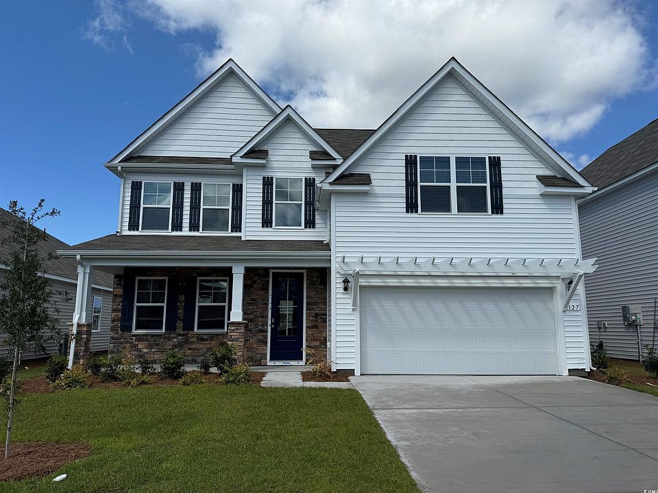 Our Forrester plan is a well appointed two story home with a picturesque front porch and screened back porch, formal dining area, and a huge kitchen island! The kitchen features granite countertops, and stainless appliances including a gas range. A bedroom and full bath on the first floor are perfect for guests visiting you at the beach while the grand owner's suite, two additional bedrooms, the laundry room, and a large bonus room with closet that could be the fifth bedroom over the garage are upstairs. This home is located on a beautiful lot in a natural gas community in Carolina Forest! The Parks of Carolina Forest is a picturesque setting of ponds, an amazing amenity center, and park of the majestic "Ten Oaks" with a walking trail to get to the Carolina Forest library. *Photos are of a similar Forrester home. (Home and community information, including pricing, included features, terms, availability and amenities, are subject to change prior to sale at any time without notice or obligation. Square footages are approximate. Pictures, photographs, colors, features, and sizes are for illustration purposes only and will vary from the homes as built. Equal housing opportunity builder.)
