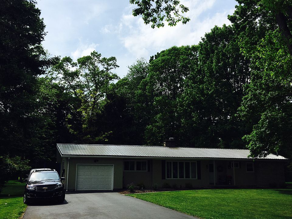 PRICE REDUCED!!!! Motivated sellers! Living room & dining room carpet. Kitchen & sitting room have laminate hardwood flooring. Sitting room has gas burning automatic remote controlled fireplace, tv mount/cable connection above fireplace and atrium door to back patio Laundry room off kitchen. 1/2 bath off laundry room. 3 bedrooms and a full bath with double vanity sinks & new ceramic tile floor. Central air with humidifier system. New Lennox forced air furnace & hit water tank. Partially finished basement with potential to finish including plumbing for a bathroom. New updates include automatic garage door, metal roof, select windows & doors, gutters, floors both laminate hardwoods & some carpet, paint, blacktop driveway, landscaping, large Amish shed with work bench, French drains, 200amp wiring, recessed lighting & light fixtures, double sliding mirrored doors in 2 bedrooms. All bedrooms have white ceiling fans/lights & select one touch blinds.
