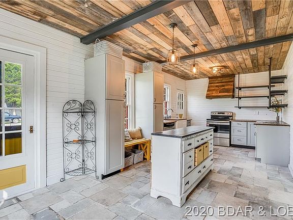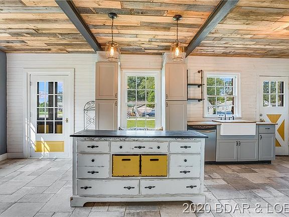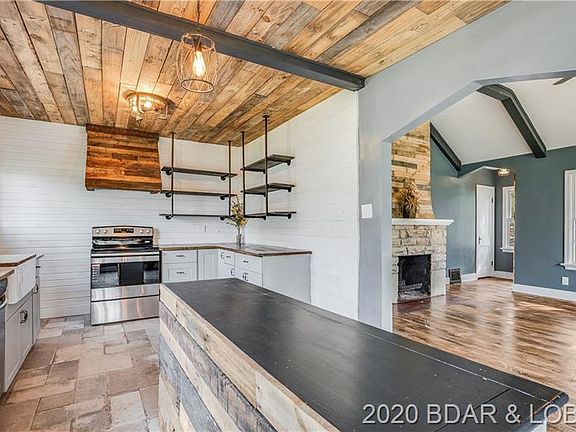 Refreshing "Joanna Gaines" 2020 Remodel at Lake of the Ozarks. Beautiful family home in the middle of the City of Camdenton within walking distance to several fast food restaurants AND the lake's famous Butcher Shop! The main level offers 2 bedrooms, 1 bathroom, kitchen/dining area and living room featuring vaulted ceilings and a wood-burning fireplace. Sitting on three level corner lots with plenty of room to add a garage and watch the kids play. The Lower level has been partially finished to include a third bedroom (Non conforming; no window), laundry area and boasts a beautiful wood-burning fireplace. Upgrades galore to include new HVAC, Roof, complete kitchen remodel, paint, flooring & bathroom! Don't miss your chance to view this wonderful home!