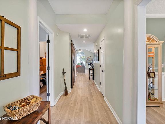 This terrific 3 bedroom 2 full bath home in Gorman Plantation is move in ready with a long list of updates including: New HVAC (2022), New roof (Dec 2021), new stainless steel oven/stove and dishwasher in the kitchen, newer LVP flooring with lifetime guarantee throughout the home (2020), newer toilets and shower fixtures in the baths (2021), new garage door (2022), and a newer storage shed in the backyard (2021). The floor plan is bright and airy and includes a formal dining room that could also serve as a home office, and a breakfast nook overlooking the fenced in backyard. A large back deck built in 2021 complete with pergola and an above ground pool round out the backyard nicely. The garage was renovated to provide a living space for an elderly family member, and it can easily be reverted back to a functional two car garage. This additional 408 square foot heated and cooled space is not included in the square footage of the home. Gorman Plantation is conveniently located close to Wrightsville Beach and Mayfaire shopping and restaurants.