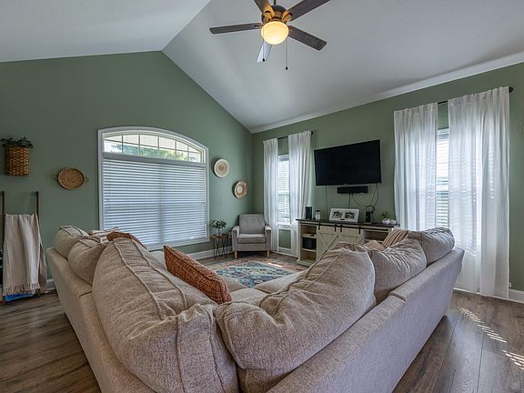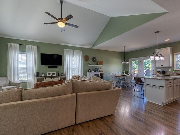 This beautiful, 3-bedroom, 2-bathroom home features, cathedral ceilings in the living room, kitchen, and dining room. There is an open concept floor plan which makes it great for hosting family gatherings and socializing. The back yard has a white vinyl privacy fence, a hot tub, and a firepit with custom seating to enjoy your peaceful evenings outdoors. There are many green arborvitae trees planted around the entire property which will add even more privacy in the years to come. The two-car garage has a utility sink and a attic, which is great for extra storage. The storage building matches the house, has an overhead storage area, a work bench and plenty of shelving. All the stainless-steel appliances, hot tub and patio/fire pit furniture stay with the house. With this home only being minutes away from restaurants, grocery stores, schools and outdoor activities like fishing and hiking, this house is perfect for people who want to live close to town but have plenty of space to enjoy the