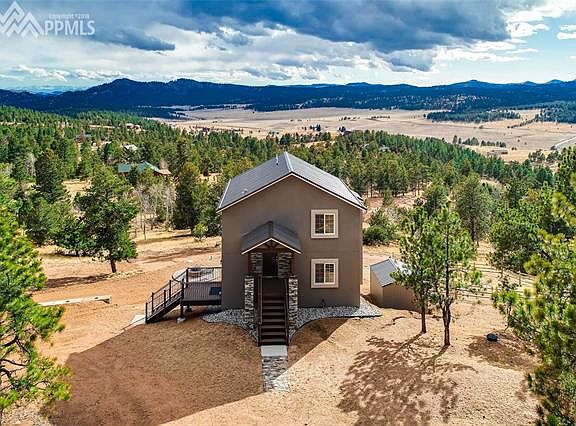 Welcome to the mountains where you will find privacy and spectacular views. Located in Colorado Mountain Estates, this property is well suited as a primary home, second home, or a vacation rental. Like new, this home includes three bedrooms, three bathrooms, and a finished walk-out basement. Enjoy gathering with family and friends inside this inviting home, or outside on one of the two decks, patio area, or around the fire pit. From the front the entryway stairs lead you to the upper level that is open and spacious. Located at the end of a cul-de-sac, this home offers an amazing amount of privacy. This level includes the kitchen, the dining room with a walk-out to the upper level deck, the living room, and a half bathroom. The kitchen has stainless steel appliances, plenty of cabinets for storage, and an island bar. The dining room and living room offer ample room for furniture and amazing views from every window. There is also a gas fireplace located in the center of the upper level to keep it plenty warm on a cold day. From the upper level, the entryway stairs lead you down to the main level, that includes the master bedroom with a walk-out to a private deck, a second bedroom, a full bathroom, and the laundry room/mudroom. From the main level, there is a spiral staircase that leads you down to the lower level basement that includes a family room, a third bedroom, and a three-quarter bathroom. Both the family room and bedroom have walk-outs to the large patio area. The lower level basement also has a gas fireplace and built in bar top. There is a fenced in area for pets, as well as a shed for extra storage. Just steps away from the patio, is the built-in fire pit. Additional areas around the property for sitting and soaking it all in.