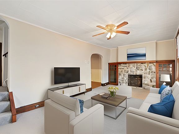 WELCOME to 127 Catskill Avenue; nestled in the heart of Brentwood! This SPACIOUS 3-bedroom home with colonial architecture features large room sizes and off-street parking! As you enter this solid 1,456-sqft home from the covered front porch, you will first notice fresh paint of neutral hues, new window treatments, and new carpeting throughout! Beautiful woodwork and built-in bookcases adorn the decorative fireplace in the living room. The open feel of the kitchen and dining room create a wonderful space for gatherings with family and friends. A completely refreshed bathroom is located at the top of the stairs. Each bedroom is generously sized with expansive closet-space! His and her closets can be found in the master bedroom which overlooks the backyard. The rear cement patio features a small, covered area and leads to the tiered 3/4 fenced yard. Situated in a quiet neighborhood -- walking distance to schools, library, shopping, and public transportation!
