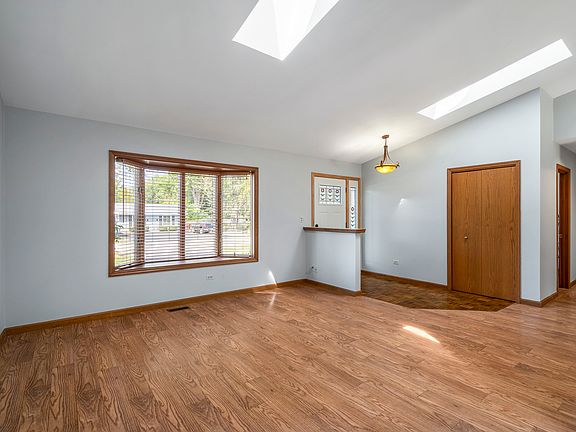 Welcome to this charming 3-bedroom ranch home, offering 1,444 sq. ft. of comfortable living space. Nestled in a vibrant, family-friendly community, with direct access to the forest preserve which features great hiking, dog walking & bicycles trails. This home boasts an inviting spacious living room with a beautiful Bay window and vaulted ceilings and skylights to fill the home with natural light creating a bright and open atmosphere. Walk into a spacious dining room off the kitchen or living room with a large sliding door leading you to a picturesque fenced-in backyard with mature trees and a huge deck, perfect for outdoor entertaining or relax while bird watching. With a spacious primary bedroom which offers a wall-to-wall closet, an ensuite bath with a jetted tub to relax and unwind in. Plus, a bonus 3rd garage for your smaller vehicles or water sport toys and a paved side apron for boats or vehicles. A convenient U-shaped driveway makes for easy in & out access. This home offers both comfort and convenience. Key updates include a furnace replaced in November 2023, a tankless water heater and water softener installed in 2007, an A/C unit replaced approximately 7 years ago, and a new roof & gutters in 2013. The home has rot & insect resistant Cedar Plank Siding. Ensuring peace of mind for years to come. Don't miss these perks of the neighborhood- residents enjoy access to a free community boat launch which is connected to the Nielson Channels known for its prime fishing spot on the Fox River. With a calendar full of events, including chili cook-offs, movie nights, kayaking events, and a Halloween experience like no other with tons of trick-or-treaters, four wheelers pulling Fall trailers with hay bails and seating for adults while their kids go door to door. Let's not forget those winter activities of ice fishing & snowmobiling. This is more than just a home; it's a lifestyle! Don't miss out on this perfect blend of peaceful living and community fun!