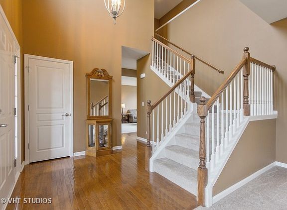 Great opportunity to own this beautifully maintained 5 bedroom home in much desired Prescott Mills. Brand New Carpet throughout home. Two story Foyer, Formal Living and Dining Room. Large Family Room with tons of Light. Kitchen has SS appliances, Corian counters and work space island. Master bedroom with vaulted ceilings and huge bathroom with walk in closet. Fully finished double Insulated basement styled as Disney's Pirate Cabin Theme, with Bar, and Movie Theater and work out room, pool table and more! Nice deck overlooking yard, backing up to open space with full rear privacy. Subdivision has a great park and is within walking distance to High School.
